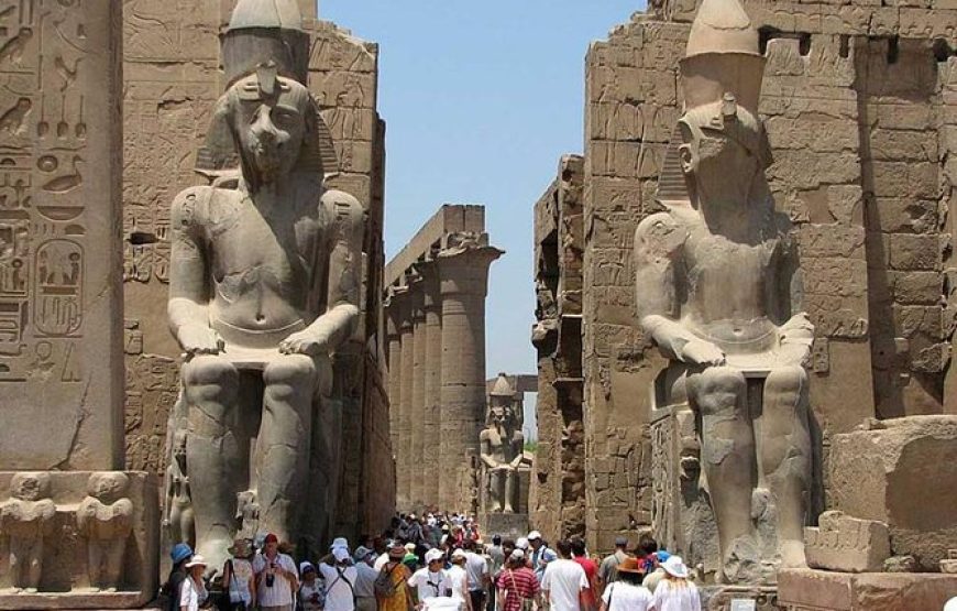 After that, you will eat lunch at a neighborhood eatery in Luxor. Furthermore, in Luxor When you travel with MINIVAN, you will first see the two enormous statues of Amenhotep III (the Colossi of Memnon) on the West Bank of the Nile. Next, you will travel to the Valley of the Kings, where three magnificent tombs were found. These tombs were carved deep into the desert rock, richly decorated, and brimming with treasures for the pharaohs’ afterlife.
